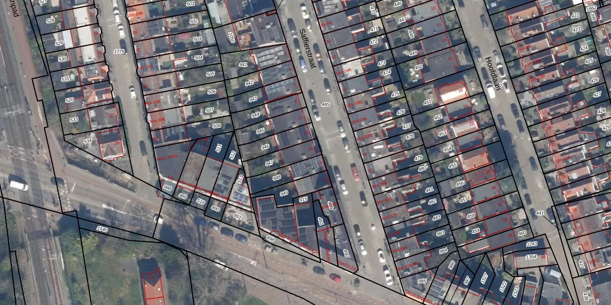 Saffierstraat 15 is gelegen op kadastraal perceel SBK01D947. Deze kadastrale aanduiding is uniek en wordt gebruikt door het Kadaster om eigendomsrechten en andere zakelijke rechten vast te leggen. Het perceel maakt onderdeel uit van de kadastrale gemeente Schiebroek.