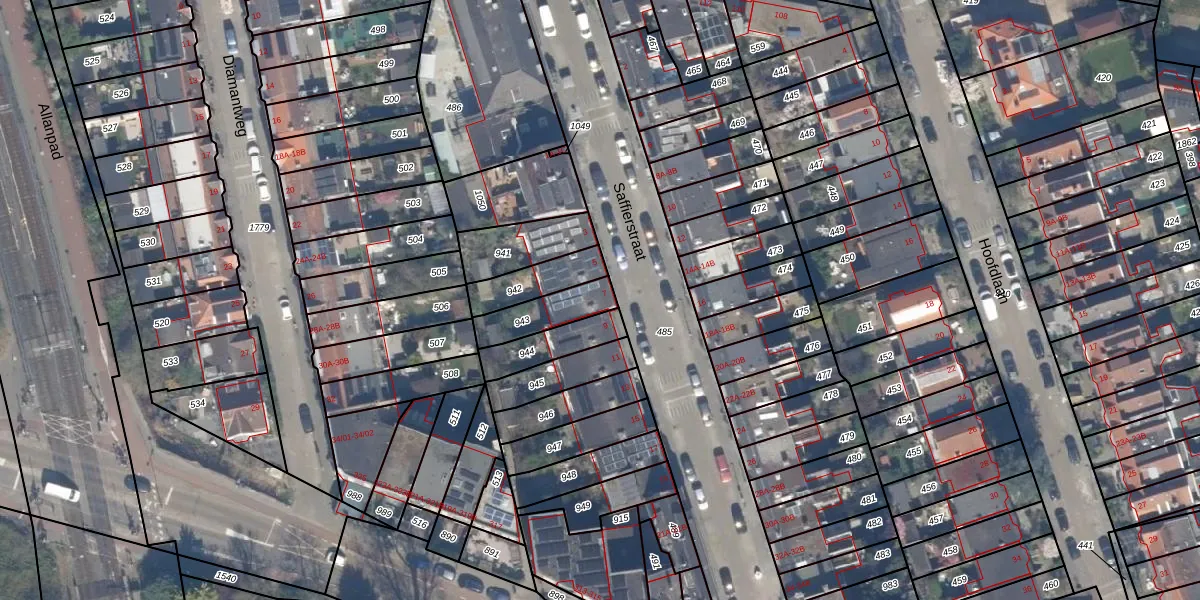 Gebruik de zoekbalk of klik op een perceel voor informatie over de adressen binnen dit perceel.
