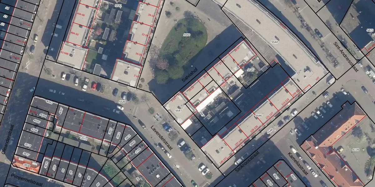 Salviahof 15 is gelegen op kadastraal perceel CLS00G5547. Deze kadastrale aanduiding is uniek en wordt gebruikt door het Kadaster om eigendomsrechten en andere zakelijke rechten vast te leggen. Het perceel maakt onderdeel uit van de kadastrale gemeente Charlois.