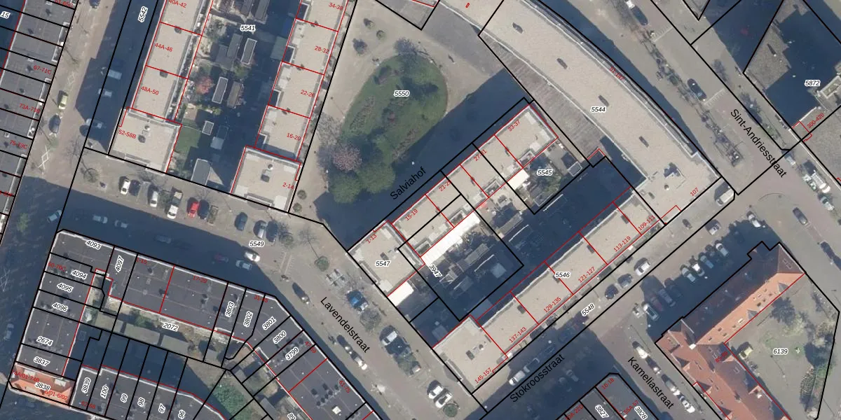 Salviahof 19 is gelegen op kadastraal perceel CLS00G5547. Deze kadastrale aanduiding is uniek en wordt gebruikt door het Kadaster om eigendomsrechten en andere zakelijke rechten vast te leggen. Het perceel maakt onderdeel uit van de kadastrale gemeente Charlois.
