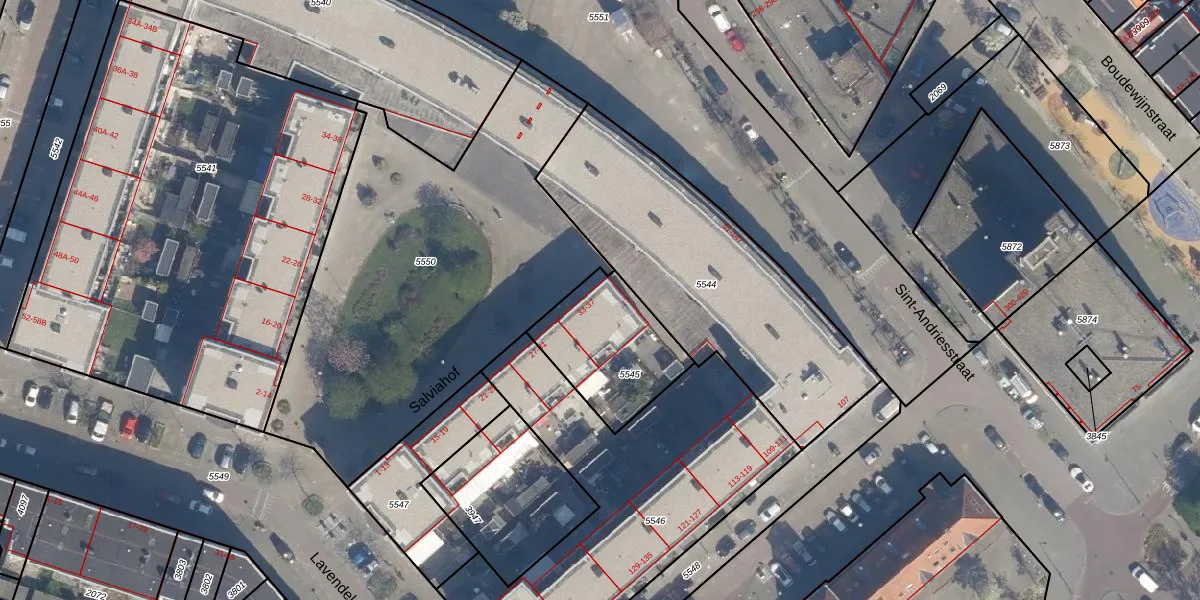 Salviahof 37 is gelegen op kadastraal perceel CLS00G5545. Deze kadastrale aanduiding is uniek en wordt gebruikt door het Kadaster om eigendomsrechten en andere zakelijke rechten vast te leggen. Het perceel maakt onderdeel uit van de kadastrale gemeente Charlois.