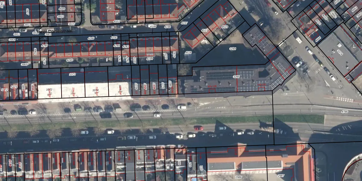 Het perceel waarop het adres ligt is CLS00-F-3285. De afkorting 'CLS00' staat voor kadastrale gemeente Charlois. De gemiddelde perceelgrootte in Charlois is 1148,01 m². Dit perceel is kleiner: de perceeloppervlakte bedraagt 1072 m². Het kleinste perceel in de kadastrale gemeente is 0 m² groot. De grootste perceeloppervlakte is 1,09 km². Er zijn 42 adressen aanwezig op het perceel. In de Basisregistratie Kadaster (BRK) werden de grenzen van het perceel geregistreerd op 19-04-2007.