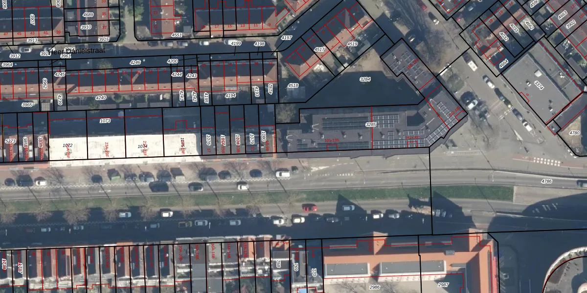 Het perceel waarop het adres ligt is CLS00-F-3285. De afkorting 'CLS00' staat voor kadastrale gemeente Charlois. De gemiddelde perceelgrootte in Charlois is 1147,17 m². Dit perceel is kleiner: de perceeloppervlakte bedraagt 1072 m². Het kleinste perceel in de kadastrale gemeente is 0 m² groot. De grootste perceeloppervlakte is 1,09 km². Op het perceel zijn 42 adressen aanwezig. In de Basisregistratie Kadaster (BRK) werden de grenzen van het perceel geregistreerd op 19-04-2007.