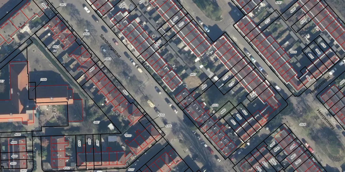 Sandelingstraat 114 is gelegen op kadastraal perceel CLS00F4457. Deze kadastrale aanduiding is uniek en wordt gebruikt door het Kadaster om eigendomsrechten en andere zakelijke rechten vast te leggen. Het perceel maakt onderdeel uit van de kadastrale gemeente Charlois.
