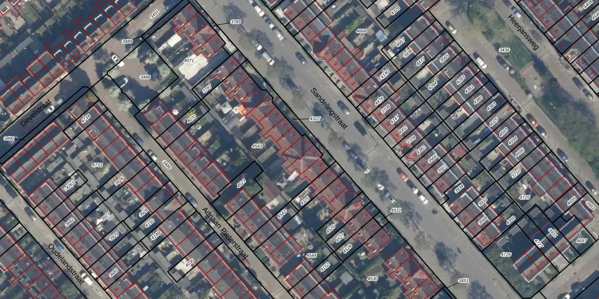 Sandelingstraat 45 is gelegen op kadastraal perceel CLS00F4543. Deze kadastrale aanduiding is uniek en wordt gebruikt door het Kadaster om eigendomsrechten en andere zakelijke rechten vast te leggen. Het perceel maakt onderdeel uit van de kadastrale gemeente Charlois.