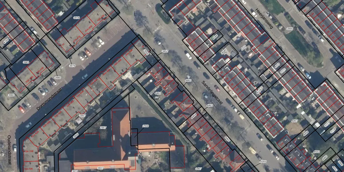 Het perceel waarop Sandelingstraat 89 staat heeft een oppervlakte van 597 m². Dit is een groot perceel. De perceeloppervlakte wordt geregistreerd door het Kadaster. Gedetailleerde informatie over de maten van dit perceel kunt u vinden in het rapport Kadastrale kaart met maatvoering van Sandelingstraat 89.
