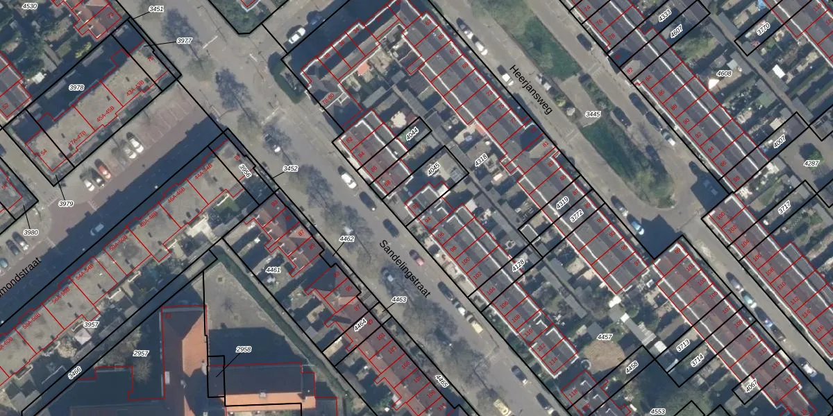 Gebruik de zoekbalk of klik op een perceel voor informatie over de adressen binnen dit perceel.