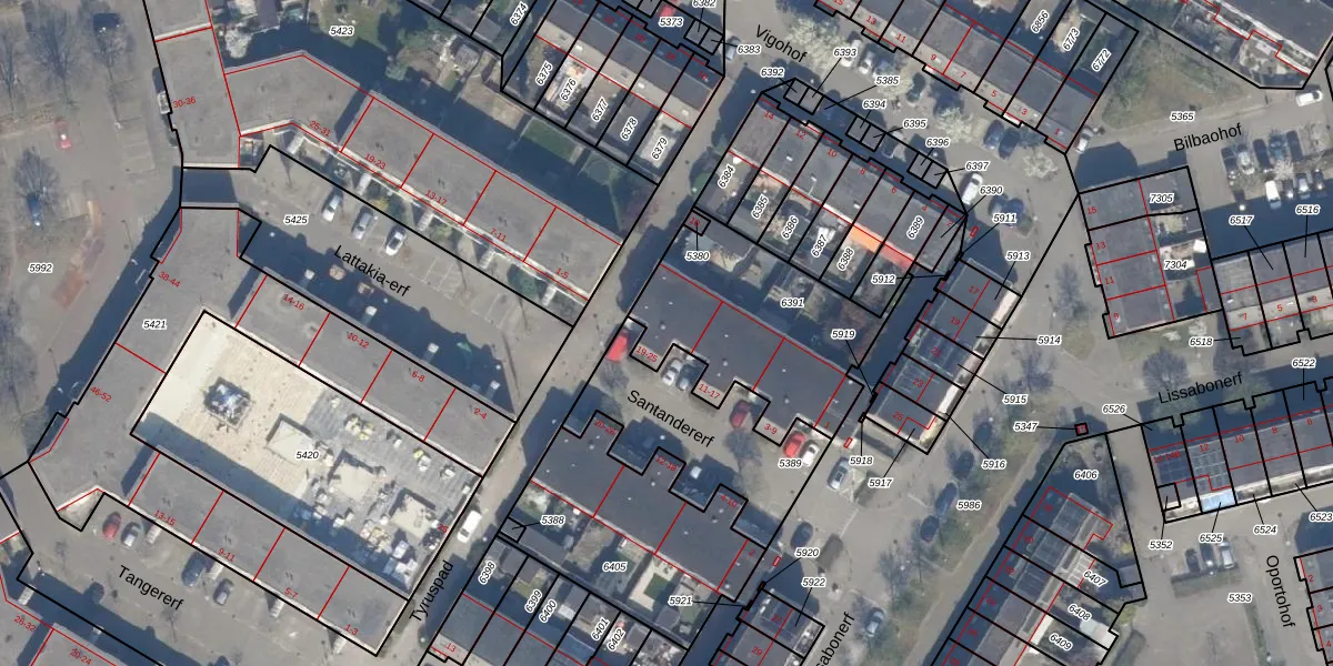 Het perceel waarop Santandererf 25 staat heeft een oppervlakte van 735 m². Dit is een groot perceel. De perceeloppervlakte wordt geregistreerd door het Kadaster. Gedetailleerde informatie over de maten van dit perceel kunt u vinden in het rapport Kadastrale kaart met maatvoering van Santandererf 25.