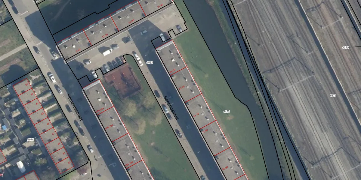 Het perceel waarop Sapphostraat 54 staat heeft een oppervlakte van 7525 m². Dit is een zeer groot perceel. De perceeloppervlakte wordt geregistreerd door het Kadaster. Gedetailleerde informatie over de maten van dit perceel kunt u vinden in het rapport Kadastrale kaart met maatvoering van Sapphostraat 54.