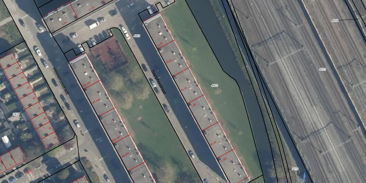 Het perceel waarop Sapphostraat 68 staat heeft een oppervlakte van 7525 m². Dit is een zeer groot perceel. De perceeloppervlakte wordt geregistreerd door het Kadaster. Gedetailleerde informatie over de maten van dit perceel kunt u vinden in het rapport Kadastrale kaart met maatvoering van Sapphostraat 68.