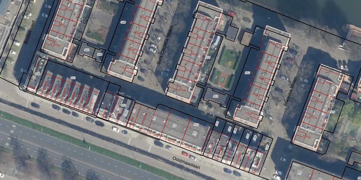 Sara Cornelia Molen 21 is gelegen op kadastraal perceel KLG00I550. Deze kadastrale aanduiding is uniek en wordt gebruikt door het Kadaster om eigendomsrechten en andere zakelijke rechten vast te leggen. Het perceel maakt onderdeel uit van de kadastrale gemeente Kralingen.