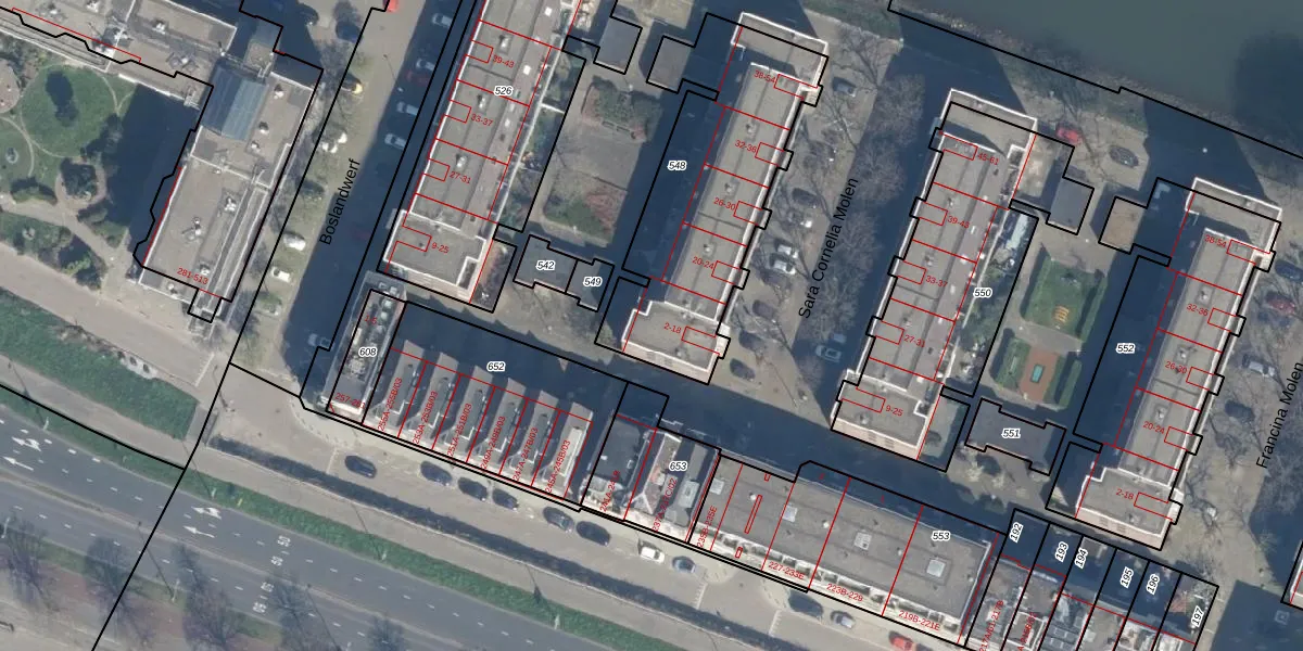 Sara Cornelia Molen 8 is gelegen op kadastraal perceel KLG00I548. Deze kadastrale aanduiding is uniek en wordt gebruikt door het Kadaster om eigendomsrechten en andere zakelijke rechten vast te leggen. Het perceel maakt onderdeel uit van de kadastrale gemeente Kralingen.