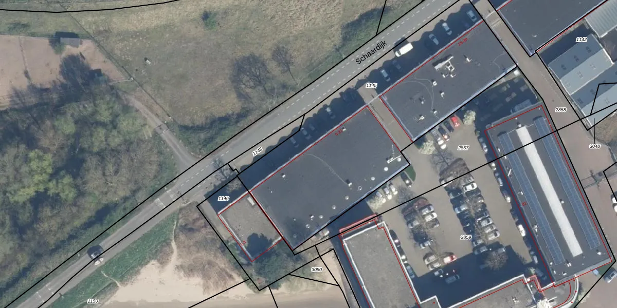 Het perceel waarop Schaardijk 13 staat heeft een oppervlakte van 2853 m². Dit is een zeer groot perceel. De perceeloppervlakte wordt geregistreerd door het Kadaster. Gedetailleerde informatie over de maten van dit perceel kunt u vinden in het rapport Kadastrale kaart met maatvoering van Schaardijk 13.