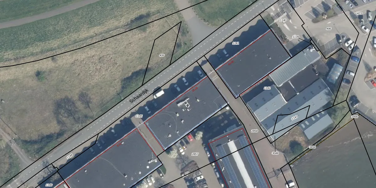 Het perceel waarop Schaardijk 35 staat heeft een oppervlakte van 2853 m². Dit is een zeer groot perceel. De perceeloppervlakte wordt geregistreerd door het Kadaster. Gedetailleerde informatie over de maten van dit perceel kunt u vinden in het rapport Kadastrale kaart met maatvoering van Schaardijk 35.