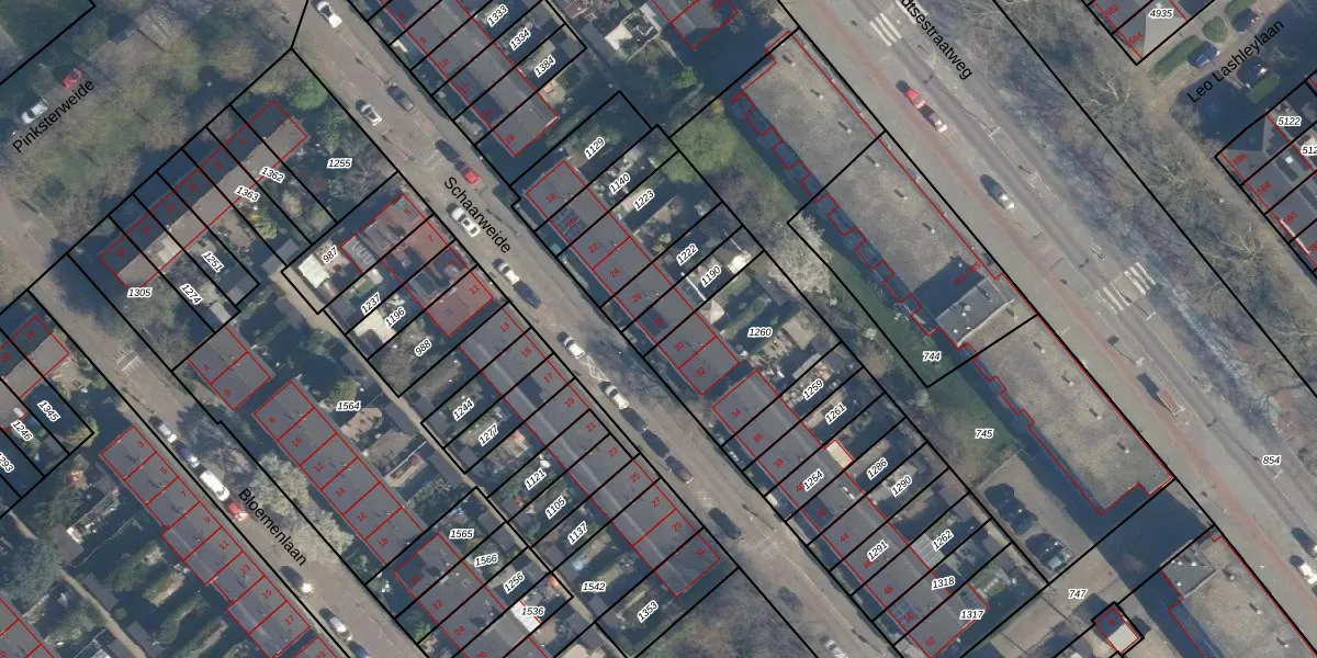 Gebruik de zoekbalk of klik op een perceel voor informatie over de adressen binnen dit perceel.