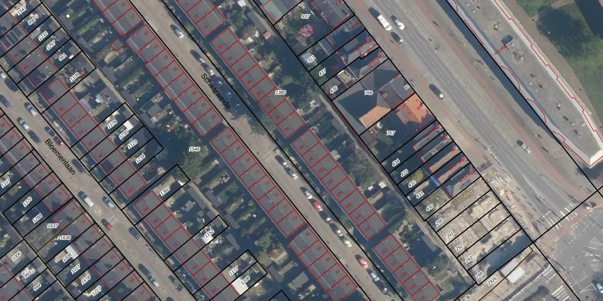 Schaarweide 96 is gelegen op kadastraal perceel CLS00I1380. Deze kadastrale aanduiding is uniek en wordt gebruikt door het Kadaster om eigendomsrechten en andere zakelijke rechten vast te leggen. Het perceel maakt onderdeel uit van de kadastrale gemeente Charlois.