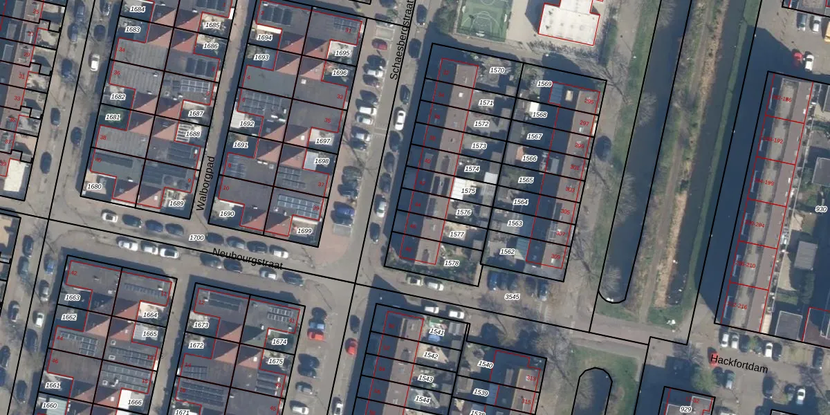 Gebruik de zoekbalk of klik op een perceel voor informatie over de adressen binnen dit perceel.