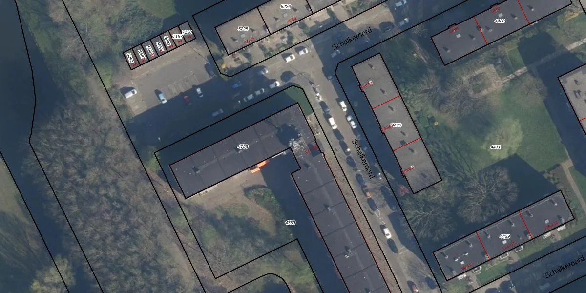 Het perceel waarop Schalkeroord 211 staat heeft een oppervlakte van 1597 m². Dit is een zeer groot perceel. De perceeloppervlakte wordt geregistreerd door het Kadaster. Gedetailleerde informatie over de maten van dit perceel kunt u vinden in het rapport Kadastrale kaart met maatvoering van Schalkeroord 211.