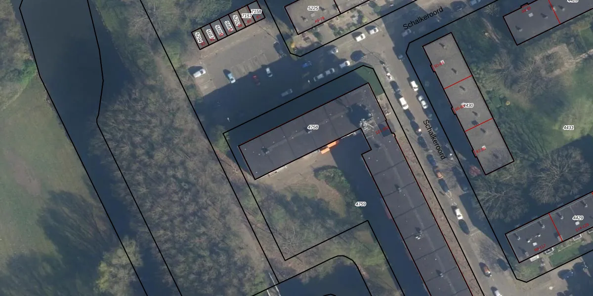 Het perceel waarop Schalkeroord 285 staat heeft een oppervlakte van 1597 m². Dit is een zeer groot perceel. De perceeloppervlakte wordt geregistreerd door het Kadaster. Gedetailleerde informatie over de maten van dit perceel kunt u vinden in het rapport Kadastrale kaart met maatvoering van Schalkeroord 285.