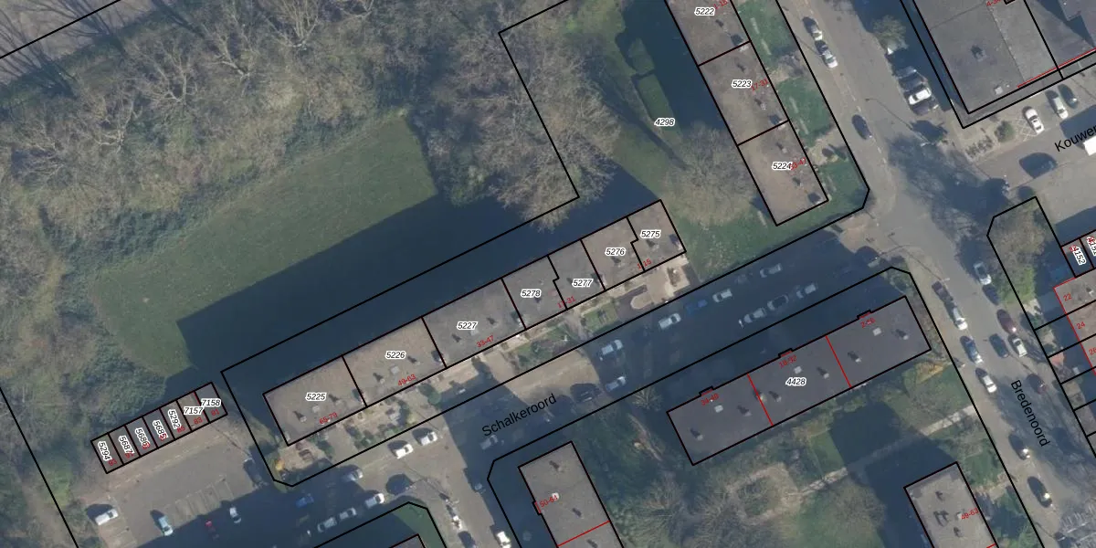 Het perceel waarop Schalkeroord 29 staat heeft een oppervlakte van 91 m². Dit is een klein perceel. De perceeloppervlakte wordt geregistreerd door het Kadaster. Gedetailleerde informatie over de maten van dit perceel kunt u vinden in het rapport Kadastrale kaart met maatvoering van Schalkeroord 29.