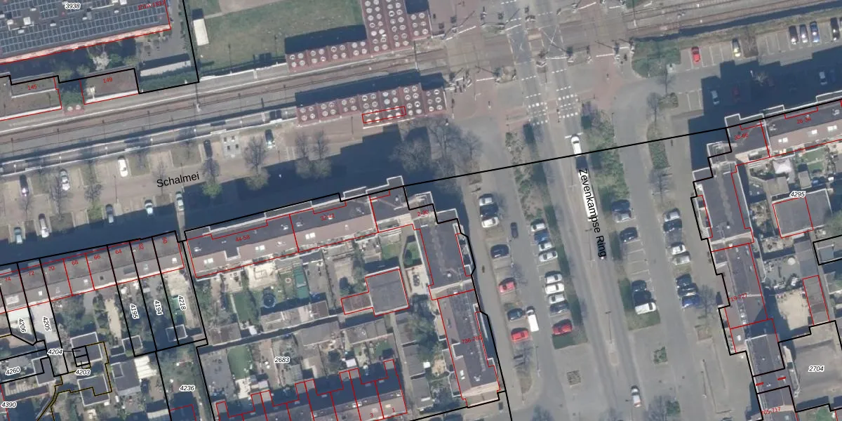 Het perceel waarop Schalmei 12 staat heeft een oppervlakte van 3630 m². Dit is een zeer groot perceel. De perceeloppervlakte wordt geregistreerd door het Kadaster. Gedetailleerde informatie over de maten van dit perceel kunt u vinden in het rapport Kadastrale kaart met maatvoering van Schalmei 12.