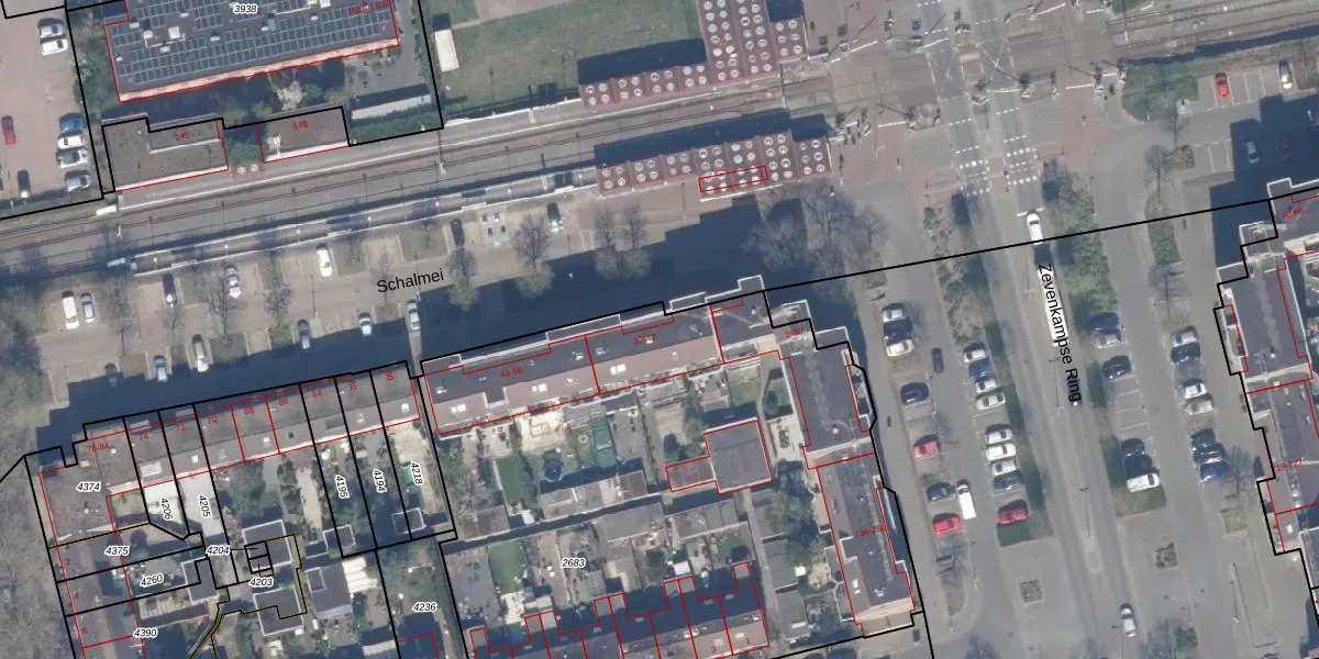 Het perceel waarop Schalmei 36 staat heeft een oppervlakte van 3630 m². Dit is een zeer groot perceel. De perceeloppervlakte wordt geregistreerd door het Kadaster. Gedetailleerde informatie over de maten van dit perceel kunt u vinden in het rapport Kadastrale kaart met maatvoering van Schalmei 36.