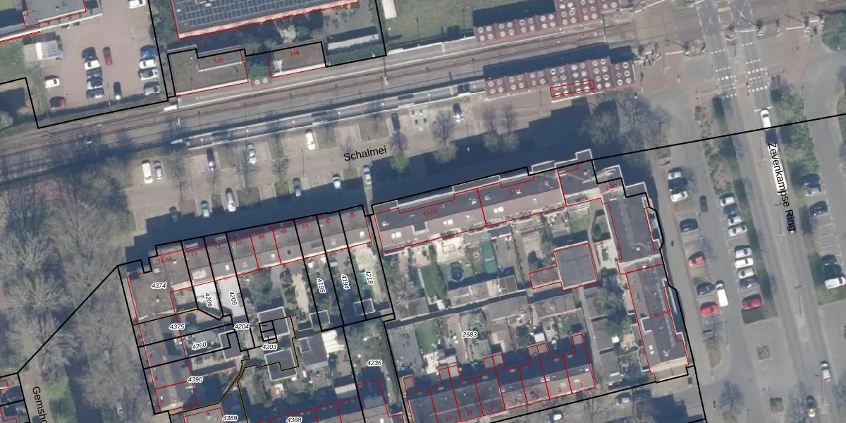 Het perceel waarop Schalmei 52 staat heeft een oppervlakte van 3630 m². Dit is een zeer groot perceel. De perceeloppervlakte wordt geregistreerd door het Kadaster. Gedetailleerde informatie over de maten van dit perceel kunt u vinden in het rapport Kadastrale kaart met maatvoering van Schalmei 52.