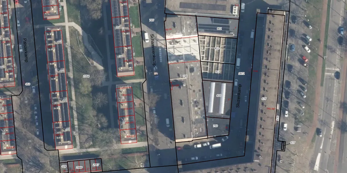 Schammenkamp 106 is gelegen op kadastraal perceel CLS00K749. Deze kadastrale aanduiding is uniek en wordt gebruikt door het Kadaster om eigendomsrechten en andere zakelijke rechten vast te leggen. Het perceel maakt onderdeel uit van de kadastrale gemeente Charlois.