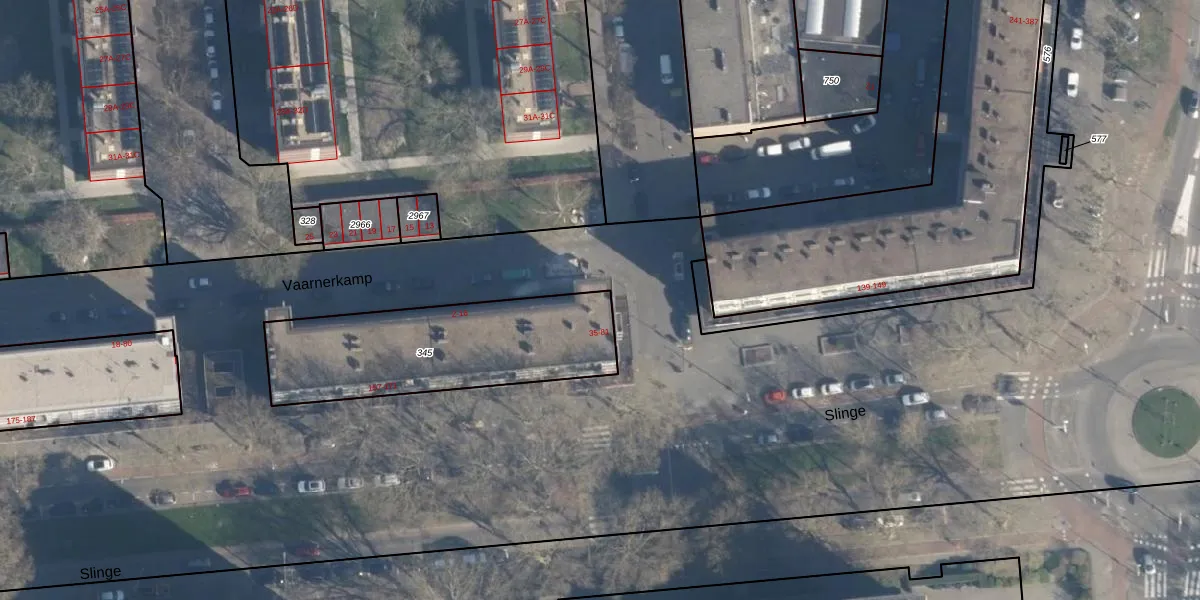 Het adres is gelegen op perceel 345 in de sectie K en de kadastrale gemeente Charlois. De kadastrale aanduiding is aldus CLS00-K-345. Het perceel is kleiner dan gemiddeld in Charlois. Het perceel is 812 m² groot, terwijl het gemiddelde ligt op 1147,69 m². De grootste perceeloppervlakte in de kadastrale gemeente is 1,09 km². De kleinste oppervlakte bedraagt 0 m². Op het perceel zijn 38 adressen aanwezig. De laatste wijziging in het de Basisregistratie Kadaster (BRK) was op 27-05-2009.