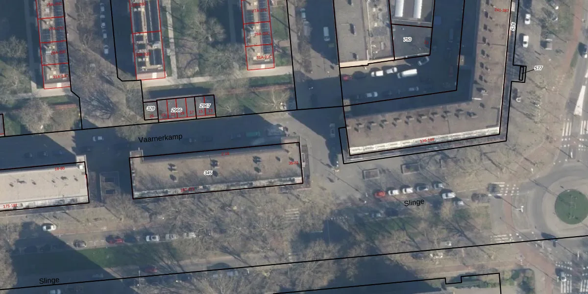 Het adres is gelegen op perceel 345 in de sectie K en de kadastrale gemeente Charlois. De kadastrale aanduiding is aldus CLS00-K-345. Het perceel is kleiner dan gemiddeld in Charlois. Het perceel is 812 m² groot, terwijl het gemiddelde ligt op 1146,98 m². De grootste perceeloppervlakte in de kadastrale gemeente is 1,09 km². De kleinste oppervlakte bedraagt 0 m². Op het perceel zijn 38 adressen aanwezig. De huidige grenzen van het perceel zijn digitaal in de Basisregistratie Kadaster (BRK) geregistreerd op 27-05-2009.