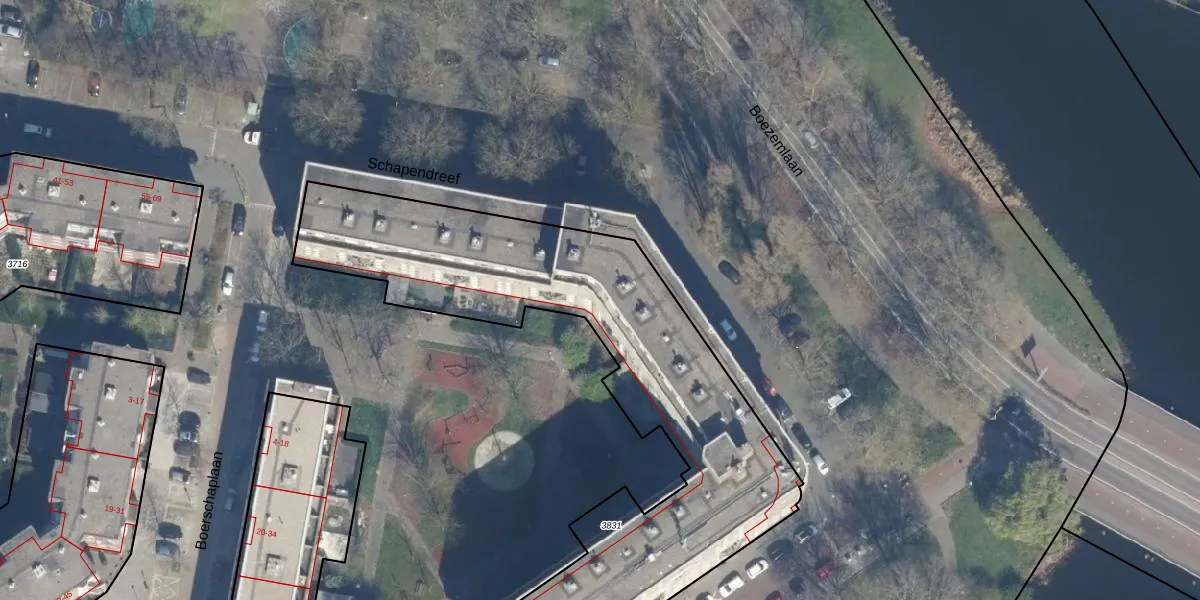 Schapendreef 115 is gelegen op kadastraal perceel KLG00C3831. Deze kadastrale aanduiding is uniek en wordt gebruikt door het Kadaster om eigendomsrechten en andere zakelijke rechten vast te leggen. Het perceel maakt onderdeel uit van de kadastrale gemeente Kralingen.
