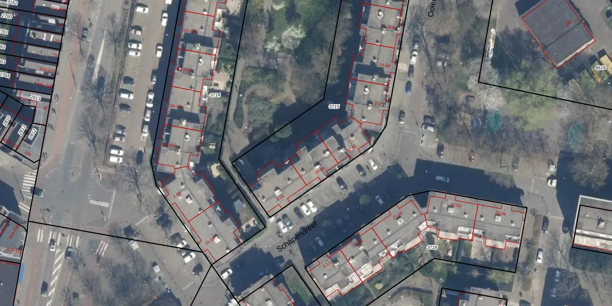 Schapendreef 30 is gelegen op kadastraal perceel KLG00C3715. Deze kadastrale aanduiding is uniek en wordt gebruikt door het Kadaster om eigendomsrechten en andere zakelijke rechten vast te leggen. Het perceel maakt onderdeel uit van de kadastrale gemeente Kralingen.