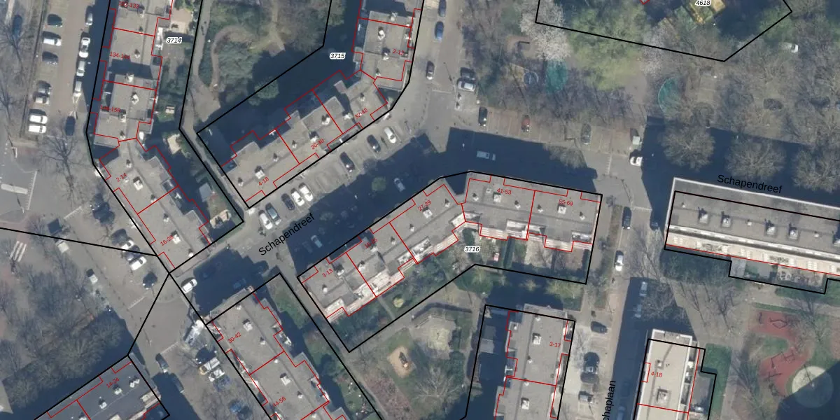 Schapendreef 33 is gelegen op kadastraal perceel KLG00C3716. Deze kadastrale aanduiding is uniek en wordt gebruikt door het Kadaster om eigendomsrechten en andere zakelijke rechten vast te leggen. Het perceel maakt onderdeel uit van de kadastrale gemeente Kralingen.