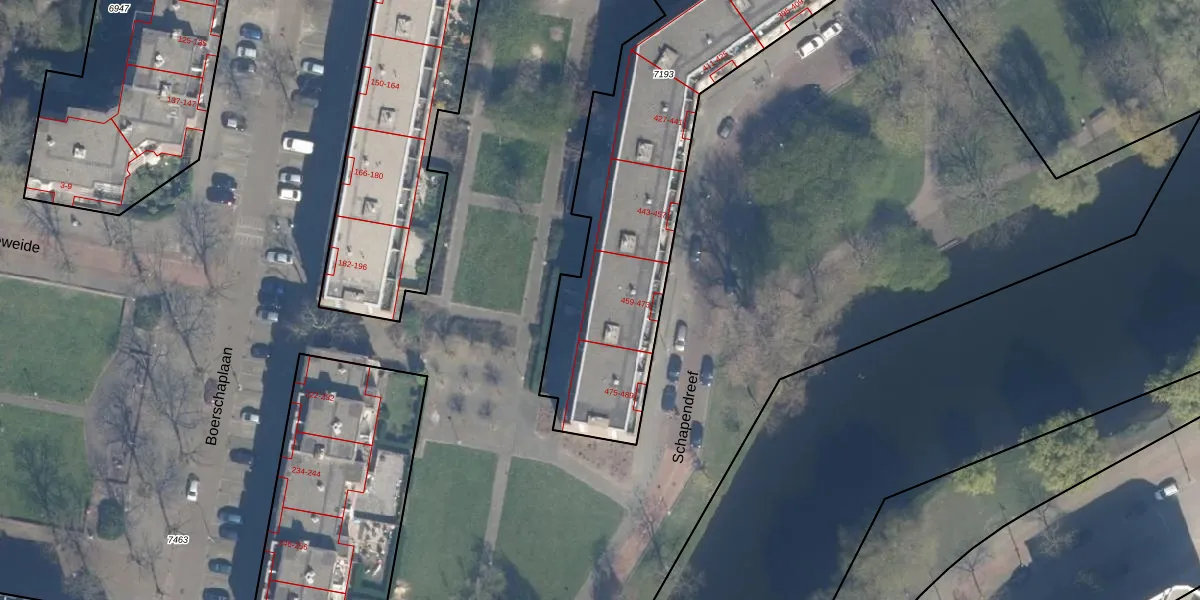 Schapendreef 469 is gelegen op kadastraal perceel RTD07R7193. Deze kadastrale aanduiding is uniek en wordt gebruikt door het Kadaster om eigendomsrechten en andere zakelijke rechten vast te leggen. Het perceel maakt onderdeel uit van de kadastrale gemeente Rotterdam.