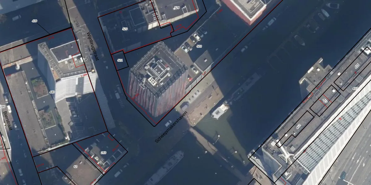 Het perceel waarop Scheepmakershaven 15 staat heeft een oppervlakte van 3217 m². Dit is een zeer groot perceel. De perceeloppervlakte wordt geregistreerd door het Kadaster. Gedetailleerde informatie over de maten van dit perceel kunt u vinden in het rapport Kadastrale kaart met maatvoering van Scheepmakershaven 15.