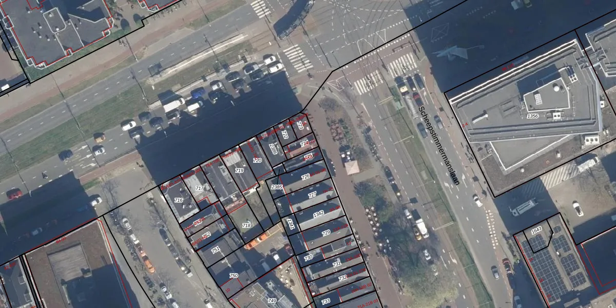 Het adres is gelegen op perceel 725 in de sectie AG en de kadastrale gemeente Rotterdam. De kadastrale aanduiding is aldus RTD04-AG-725. Het perceel is kleiner dan gemiddeld in Rotterdam. Het perceel is 44 m² groot, terwijl het gemiddelde ligt op 1239,97 m². Het grootste perceel in de kadastrale gemeente is 17,3 ha. Het kleinste perceel heeft een oppervlakte van 0 m². Op het perceel zijn 4 adressen aanwezig. In de Basisregistratie Kadaster (BRK) werden de grenzen van het perceel geregistreerd op 17-11-2021.