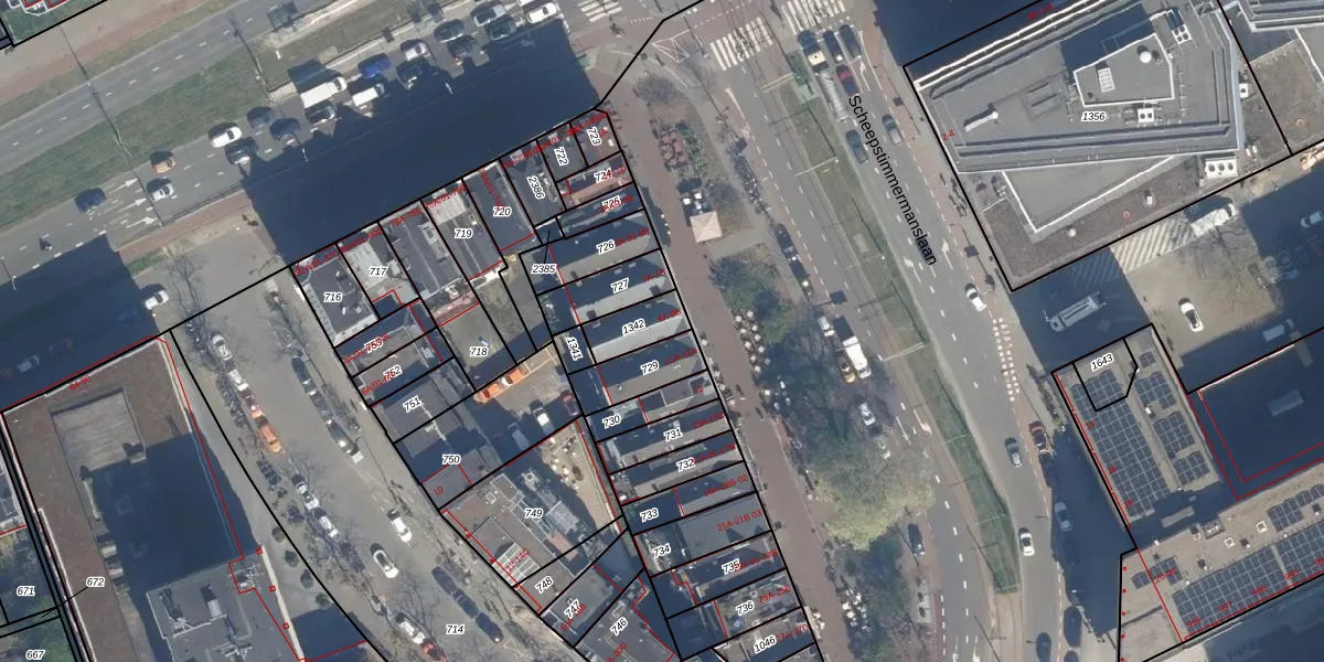 Scheepstimmermanslaan 9-B is gelegen op kadastraal perceel RTD04AG1342. Deze kadastrale aanduiding is uniek en wordt gebruikt door het Kadaster om eigendomsrechten en andere zakelijke rechten vast te leggen. Het perceel maakt onderdeel uit van de kadastrale gemeente Rotterdam.
