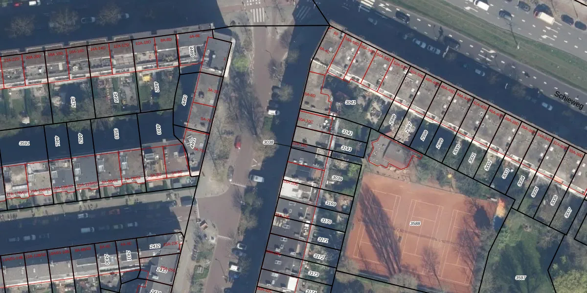 Gebruik de zoekbalk of klik op een perceel voor informatie over de adressen binnen dit perceel.