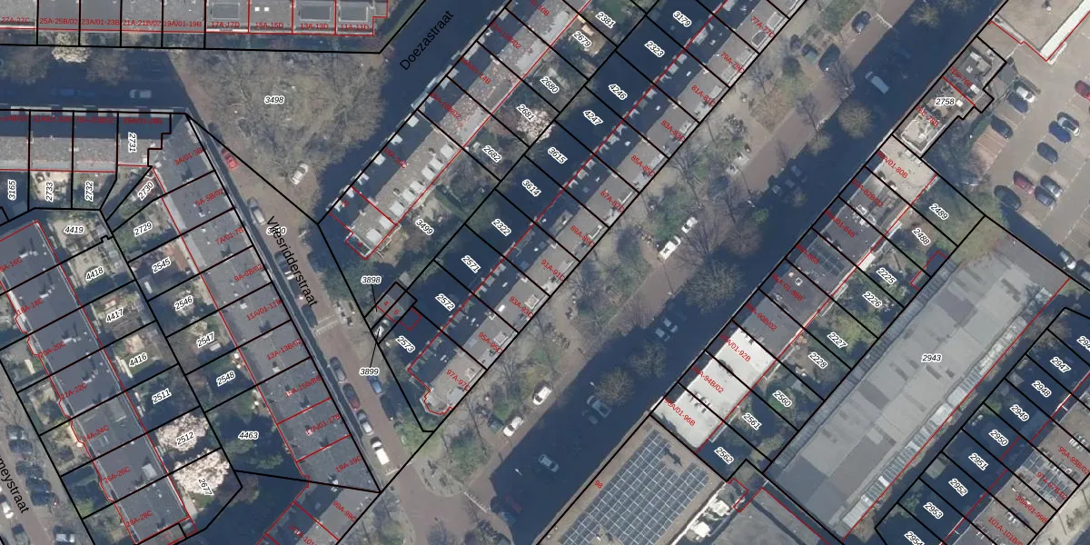 Het adres is gelegen op perceel 2322 in de sectie Z en de kadastrale gemeente Rotterdam. De kadastrale aanduiding is aldus RTD10-Z-2322. Het perceel is 174 m² groot. Dat is kleiner dan de gemiddelde perceeloppervlakte in Rotterdam, dat op 1602,8 m² ligt. Het grootste perceel in de kadastrale gemeente is 30,3 ha. Het kleinste perceel heeft een oppervlakte van 0 m². Op het perceel zijn 3 adressen aanwezig. De laatste wijziging in het de Basisregistratie Kadaster (BRK) was op 24-01-2003.