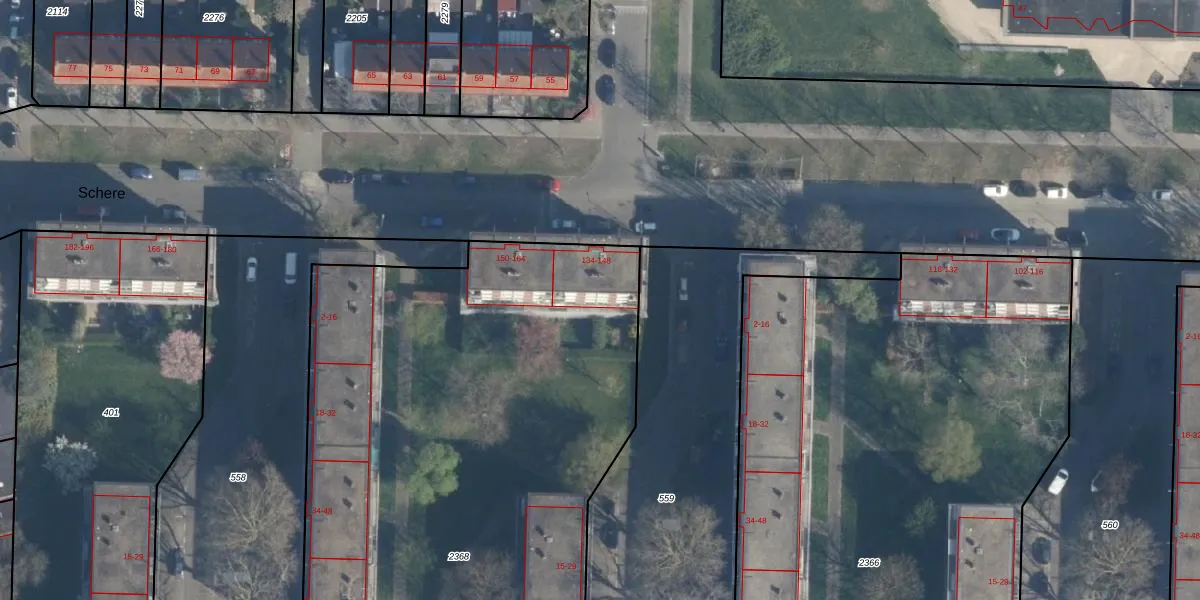 Schere 142 is gelegen op kadastraal perceel CLS00K2368. Deze kadastrale aanduiding is uniek en wordt gebruikt door het Kadaster om eigendomsrechten en andere zakelijke rechten vast te leggen. Het perceel maakt onderdeel uit van de kadastrale gemeente Charlois.
