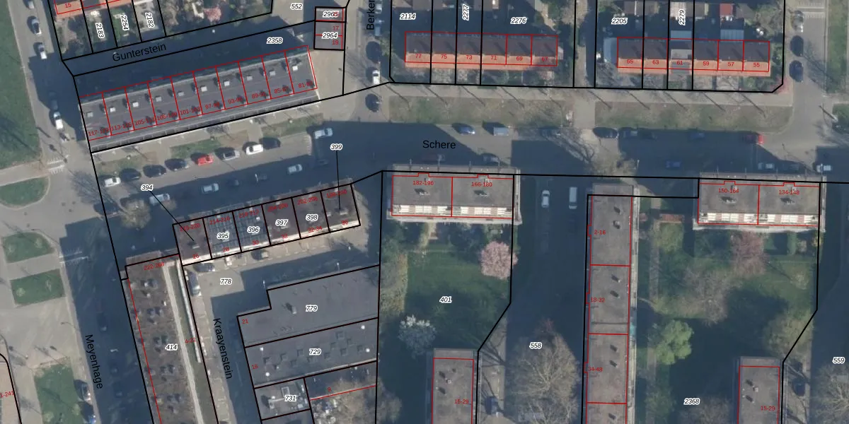 Het perceel waarop Schere 182 staat heeft een oppervlakte van 2936 m². Dit is een zeer groot perceel. De perceeloppervlakte wordt geregistreerd door het Kadaster. Gedetailleerde informatie over de maten van dit perceel kunt u vinden in het rapport Kadastrale kaart met maatvoering van Schere 182.