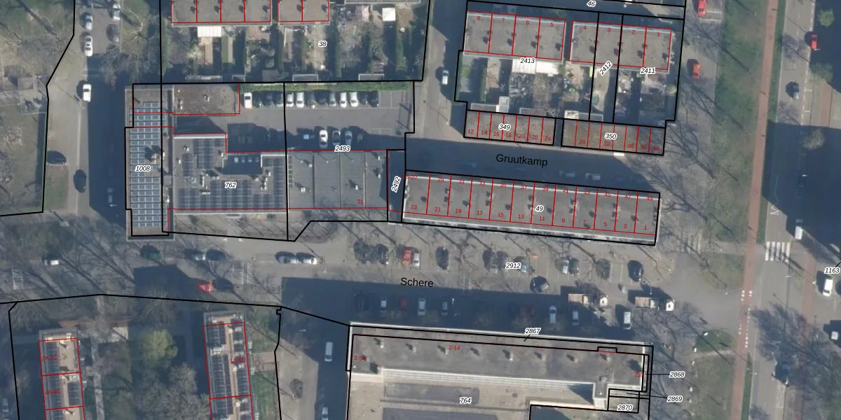 Het perceel waarop Schere 23 staat heeft een oppervlakte van 758 m². Dit is een groot perceel. De perceeloppervlakte wordt geregistreerd door het Kadaster. Gedetailleerde informatie over de maten van dit perceel kunt u vinden in het rapport Kadastrale kaart met maatvoering van Schere 23.