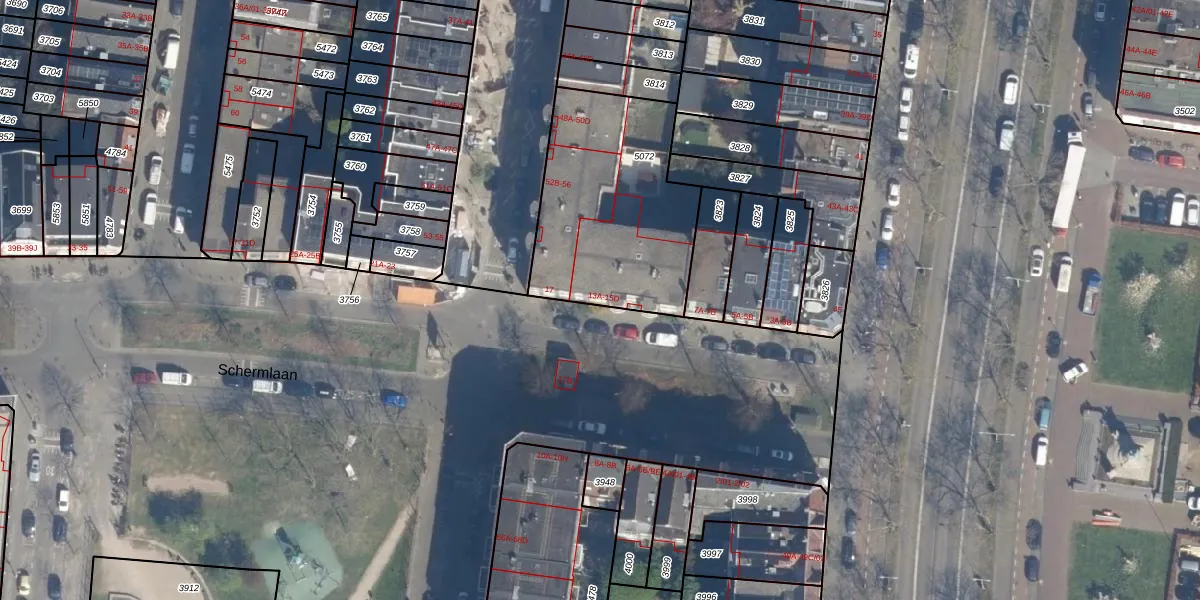 Schermlaan 15-C is gelegen op kadastraal perceel DHV00C5072. Deze kadastrale aanduiding is uniek en wordt gebruikt door het Kadaster om eigendomsrechten en andere zakelijke rechten vast te leggen. Het perceel maakt onderdeel uit van de kadastrale gemeente Delfshaven.