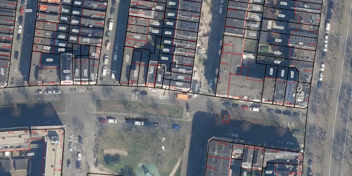Schermlaan 21-B is gelegen op kadastraal perceel DHV00C3757. Deze kadastrale aanduiding is uniek en wordt gebruikt door het Kadaster om eigendomsrechten en andere zakelijke rechten vast te leggen. Het perceel maakt onderdeel uit van de kadastrale gemeente Delfshaven.