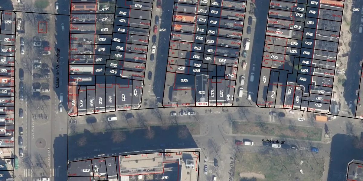 Schermlaan 41 is gelegen op kadastraal perceel DHV00C5428. Deze kadastrale aanduiding is uniek en wordt gebruikt door het Kadaster om eigendomsrechten en andere zakelijke rechten vast te leggen. Het perceel maakt onderdeel uit van de kadastrale gemeente Delfshaven.