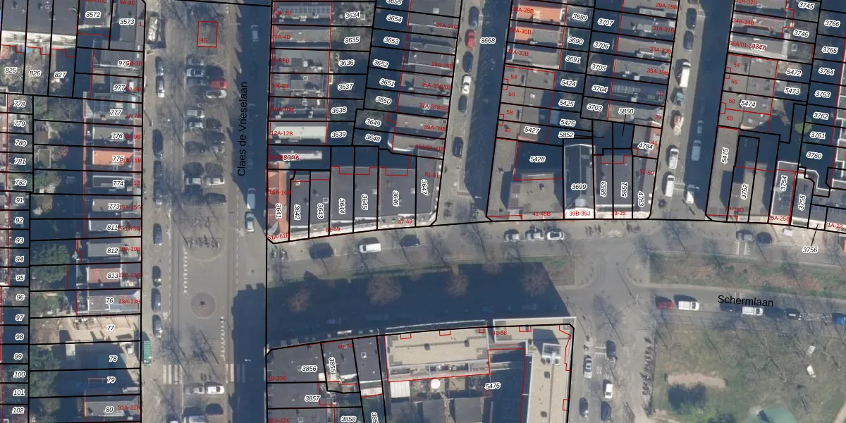 Het perceel waarop Schermlaan 47 staat heeft een oppervlakte van 82 m². Dit is een klein perceel. De perceeloppervlakte wordt geregistreerd door het Kadaster. Gedetailleerde informatie over de maten van dit perceel kunt u vinden in het rapport Kadastrale kaart met maatvoering van Schermlaan 47.