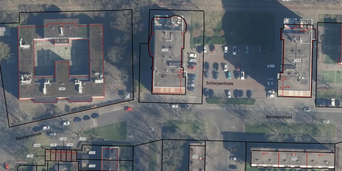 Het perceel waarop Scherpenhoek 25 staat heeft een oppervlakte van 871 m². Dit is een groot perceel. De perceeloppervlakte wordt geregistreerd door het Kadaster. Gedetailleerde informatie over de maten van dit perceel kunt u vinden in het rapport Kadastrale kaart met maatvoering van Scherpenhoek 25.