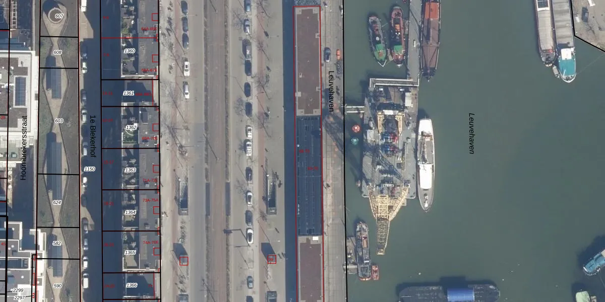 Het perceel waarop het adres ligt is RTD04-AG-2414. De afkorting 'RTD04' staat voor kadastrale gemeente Rotterdam. De oppervlakte van het perceel is 8,0 ha. Dat is groter dan gemiddeld in Rotterdam, waar de gemiddelde perceeloppervlakte op 1239,97 m² ligt. Het grootste perceel in de kadastrale gemeente is 17,3 ha. Het kleinste perceel heeft een oppervlakte van 0 m². Op het perceel zijn 5 adressen aanwezig. De laatste wijziging in het de Basisregistratie Kadaster (BRK) was op 04-08-2023.