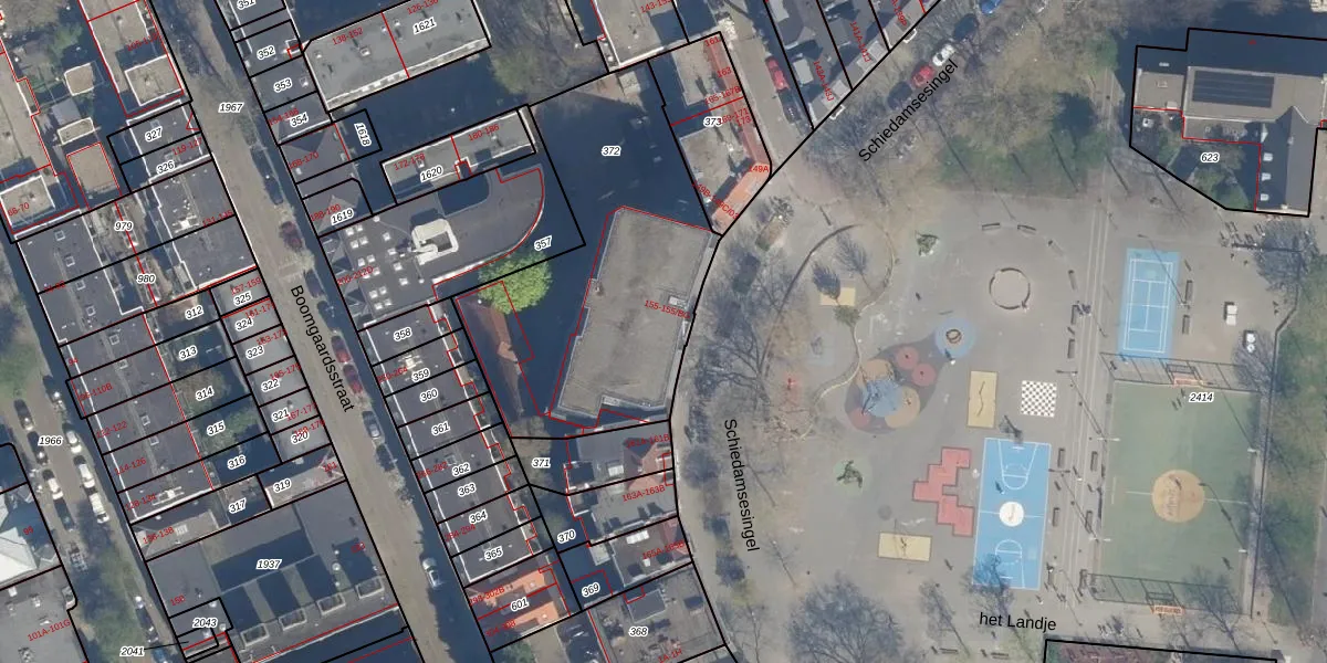 Schiedamsesingel 155-BG is gelegen op kadastraal perceel RTD04AG372. Deze kadastrale aanduiding is uniek en wordt gebruikt door het Kadaster om eigendomsrechten en andere zakelijke rechten vast te leggen. Het perceel maakt onderdeel uit van de kadastrale gemeente Rotterdam.