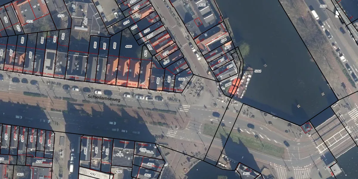 Schiedamseweg 1-B-02 is gelegen op kadastraal perceel DHV00H3682. Deze kadastrale aanduiding is uniek en wordt gebruikt door het Kadaster om eigendomsrechten en andere zakelijke rechten vast te leggen. Het perceel maakt onderdeel uit van de kadastrale gemeente Delfshaven.